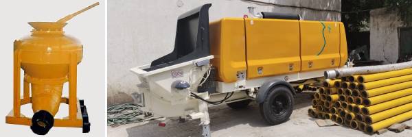 A Concrete line pump is a large machine designed to transport and pour concrete over large distances. Unlike a boom pump, it doesn't have a remote-controlled robotic arm.